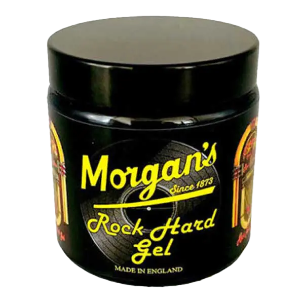 Un gel de maintien ferme idéal pour le look rockabilly dans un bocal en verre noir avec un design de juke-box